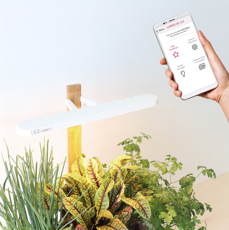 All-in-One: Energiesparende LEDs imitieren Sonnenlicht und die Kapseln enthalten BIO-Saatgut und alle wichtigen Nährstoffe. Die Prêt-à-Pousser-App unterstützt Sie mit hilfreichen Tipps während des gesamten Wachstums.