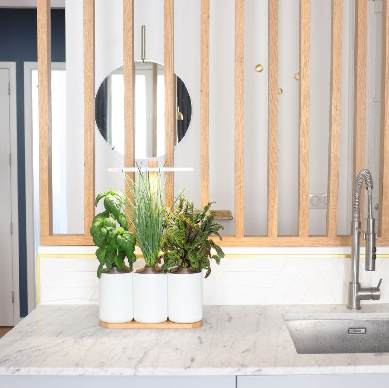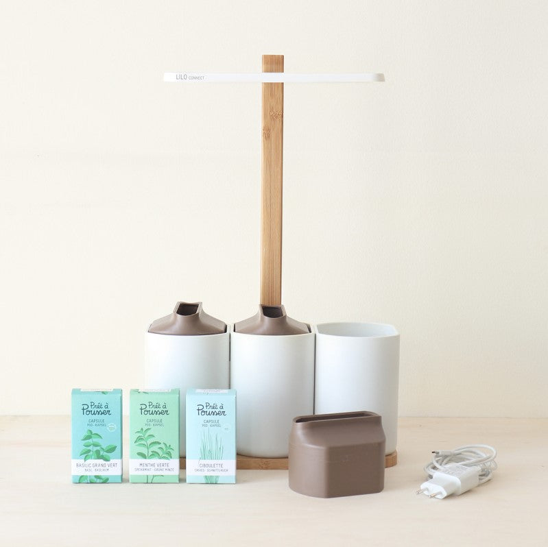 Dein smarter Indoor-Kräutergarten für frische Kräuter, Salate, Mini-Gemüse und Blumen in elegantem Weiß. Keine Lust mehr auf welkendes Basilikum? Die vernetzbare Version des klassischen Indoor-Gartens Lilo sorgt das ganze Jahr über für eine frische Ernte, dank biologisch abbaubarer Kapseln, die Saatgut und Nährstoffe bereits enthalten. Kräuter, Salate, Blumen und sogar Mini-Gemüse anzubauen war noch nie so einfach – jetzt mit einer intelligenten, per App steuerbaren LED-Leuchte.
