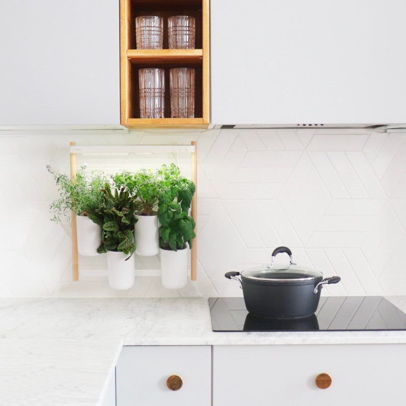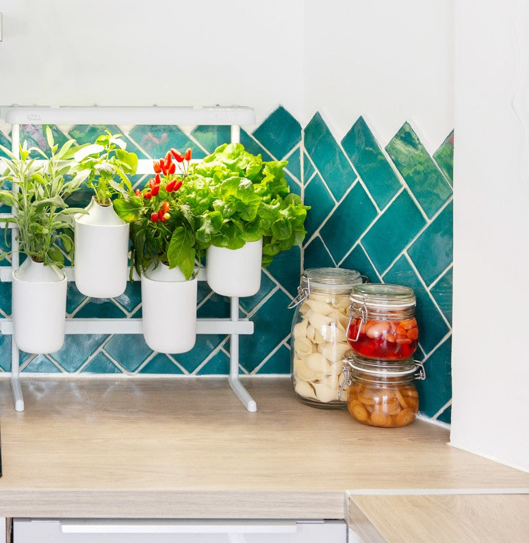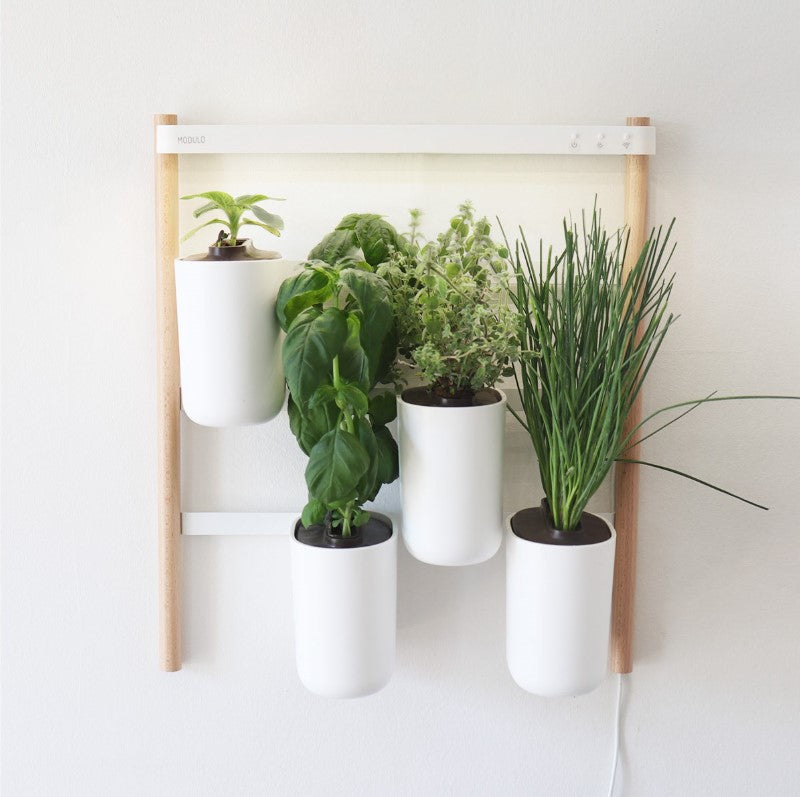 Dein flexibler Indoor-Kräutergarten für frische Kräuter, Salate, Mini-Gemüse und Blumen in deinem Zuhause – in Weiß. Keine Lust mehr auf welkendes Basilikum? Der Indoor-Kräutergarten Modulo 2 sorgt das ganze Jahr über für eine frische Ernte, dank biologisch abbaubarer Kapseln, die Saatgut und Nährstoffe bereits enthalten. Kräuter, Salate, Blumen und sogar Mini-Gemüse anzubauen gelingt damit mühelos – ganz ohne grünen Daumen. Modulo ist erweiterbar und passt sich flexibel an dein Zuhause an: wandhängend, stehend, übereinander oder beidseitig aufgebaut.