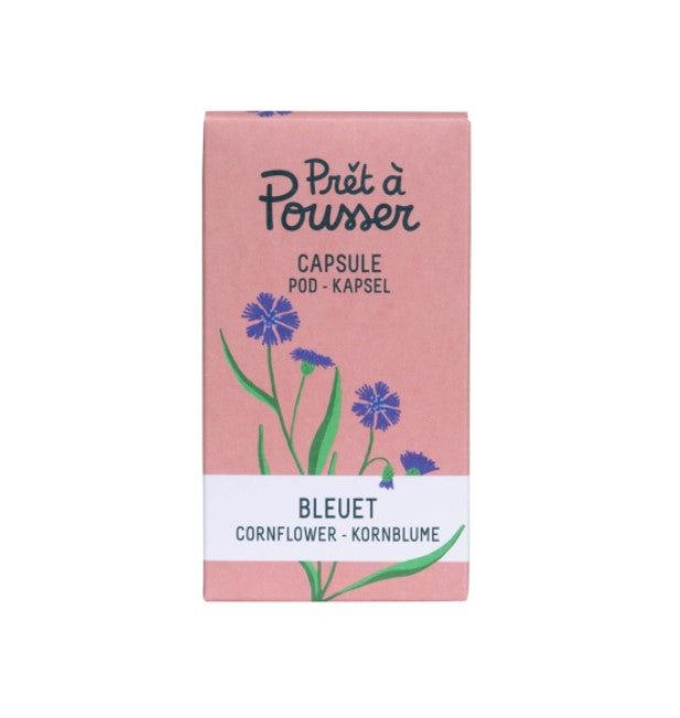 Biologisch abbaubare Kapsel mit Kornblume – enthält Saatgut und Nährstoffe, geeignet für die Indoor-Gärten von Prêt à Pousser – Grün
