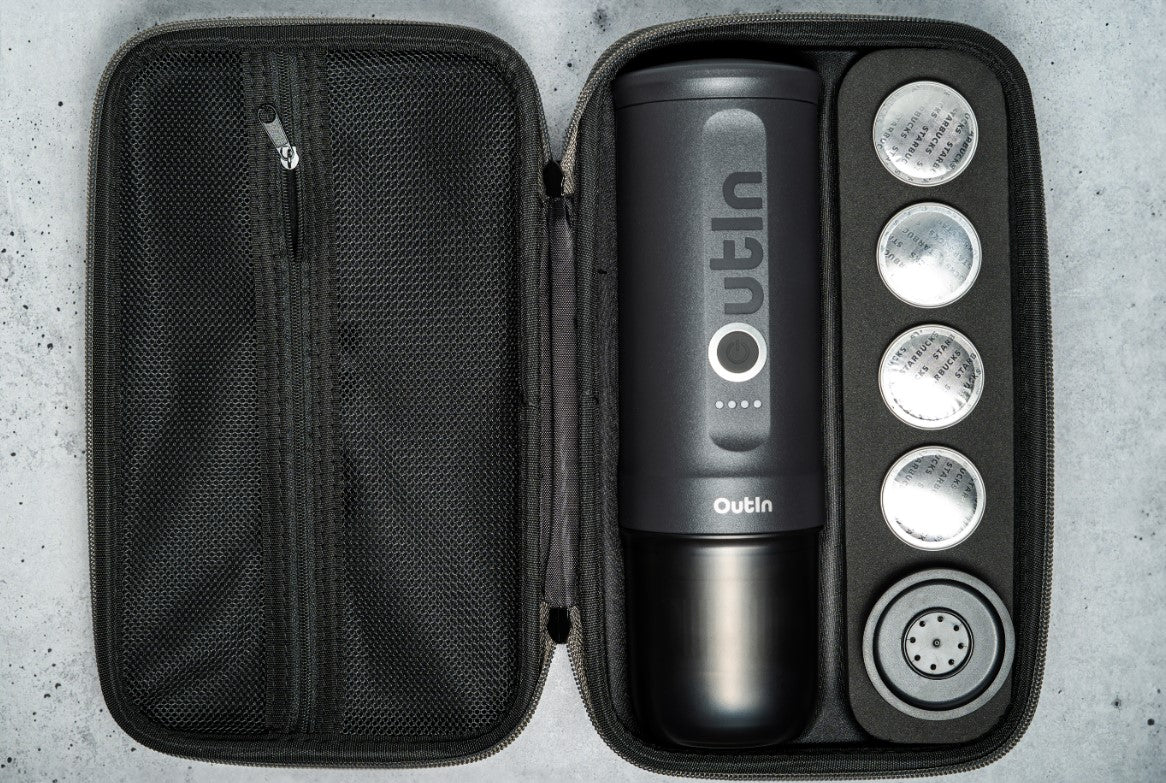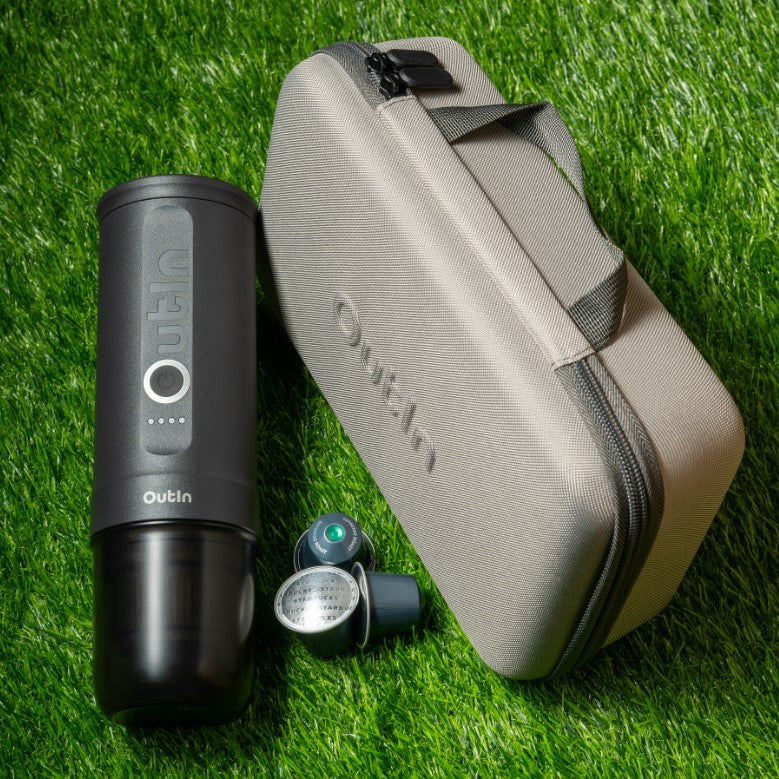 Entdecken Sie das perfekte Geschenk für Kaffeeliebhaber: das Outin Espresso-Geschenkset für Reisende. Dieses Set enthält die innovative OutIn Nano Espressomaschine und ein passgenaues, stilvolles Schutzetui.Ideal für unterwegs, im Büro oder auf Reisen. Mit 20 Bar Druck und einer Aufheizzeit von nur 200 Sekunden genießen Sie jederzeit cremigen Espresso in Barista-Qualität. Ob beim Camping, Wandern oder im Hotelzimmer. Für Kapseln und gemahlenen Kaffee.